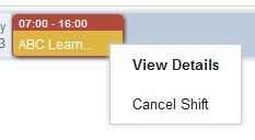 Right-clicking on a shift tag will allow you to take various shortcuts depending on its colour, or status.