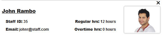This section shows, on an unconfirmed assignment, the person you’re considering or have reserved for it. Displayed is their name, Staff ID, clickable email address, and a summary of recent work hours. Clicking on their name in this section will take you to their Personnel Management screen, and you can clear them from the preview by clicking on the X in the upper right corner of this area.