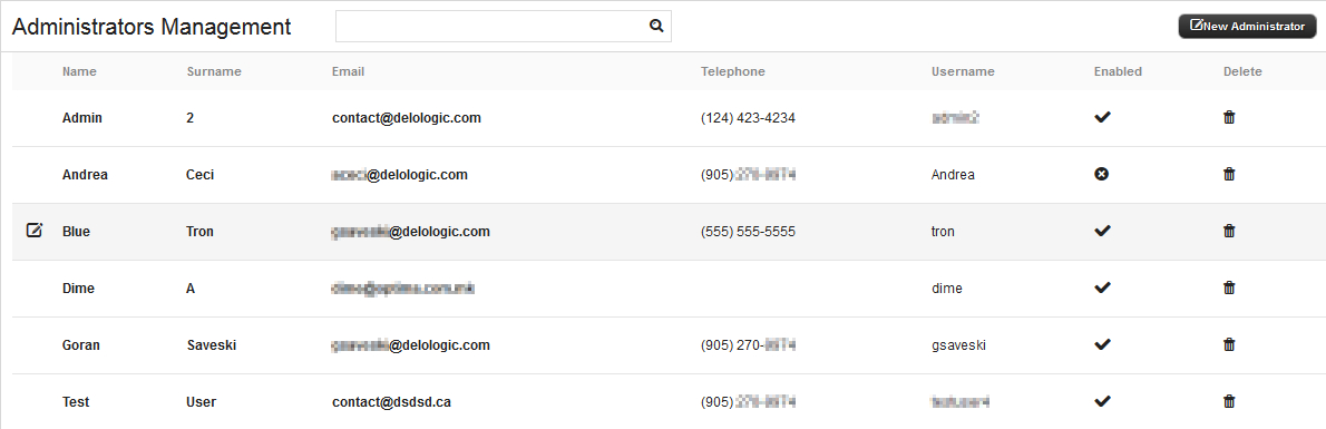 1. To add a new administrator, click the ‘New Administrator’ button. This will bring up the New Administrator window.