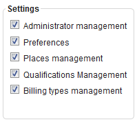 - Billing types management - When disabled, the user cannot access or change any billing types.