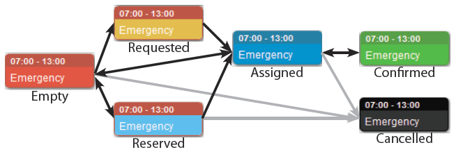 To Recap - assignment flow is as follows: An assignment can travel between many states before it’s complete, but once cancelled or confirmed, it is locked, and can no longer be modified (with the exception of confirmed shifts, which can be undone with the proper permission). Entries are placed in the event log with each change in status.